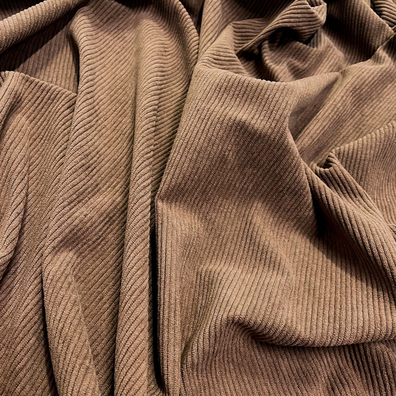 Плотный, и в то же время приятный материал с матовым блеском по лицевой стороне и нежной бархатистой поверхностью. На лицевой стороне классический ворс, создающий фактуру в полоску. Хорошая плотность ткани обеспечивает ее высокую износостойкость. Вещи из вельвета всегда актуальны, удобны в носке и не мнутся. Ткань прекрасно подходит для пошива свитшотов, платьев, юбок, а также спортивных костюмов.